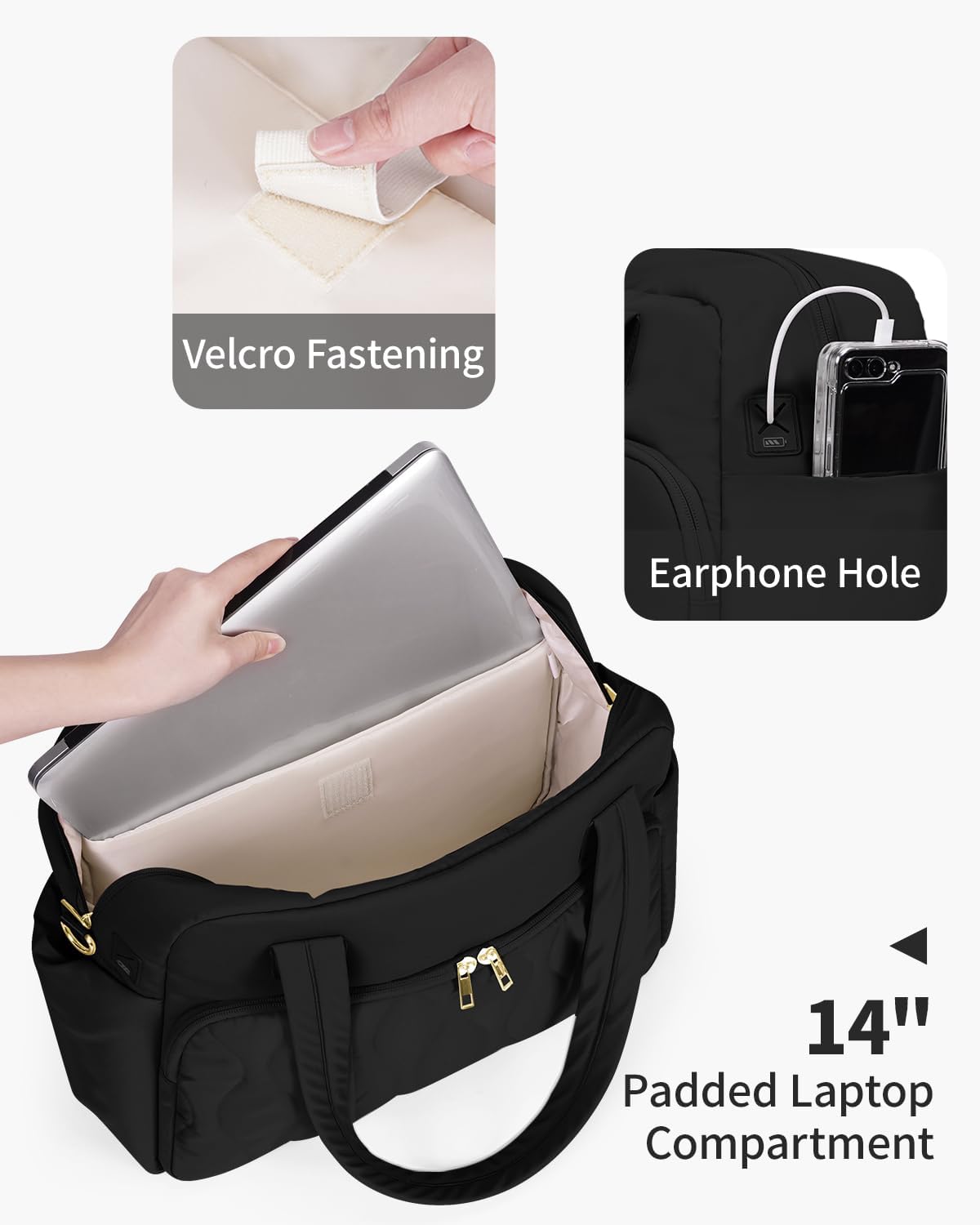 - ersatile & Multifunctional: Whether you’re jetting off for a weekend getaway or heading to the gym, this trael weekender bag adapts to eery occasion. Use it as a carry-on, gym bag, diaper bag, hospital bag, oernight bag, or een a stylish laptop tote. A thoughtful and practical gift for women who are always on the moe.