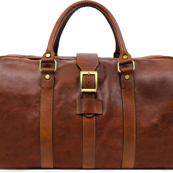 Leather Duffle Bag - Full Grain Leather Travel Bag for Men and Women - Carry on Duffel Bag -